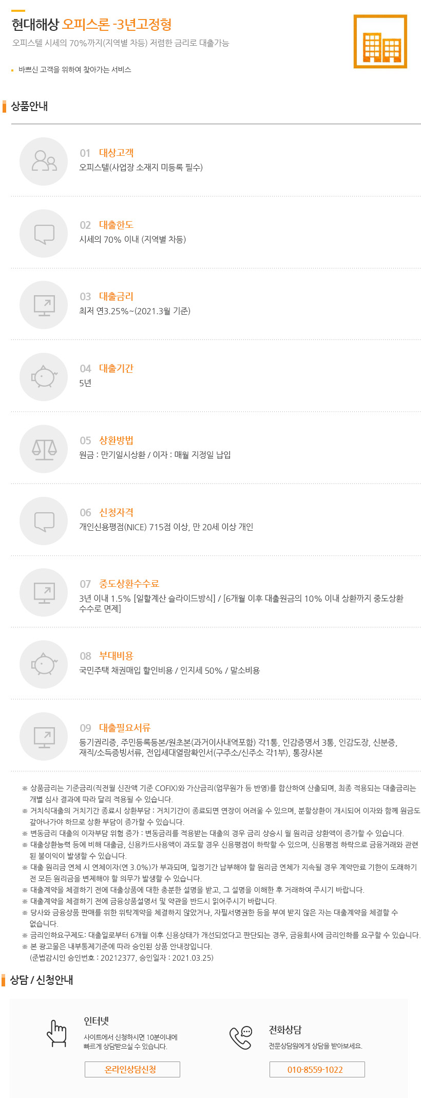 관리점포: 경기도 수원시 권선구 효원로 268 1층 현대해상 / 현대해상 대출상담사 강미애 / 대출상담사등록번호 : 10-00024468 / 대출상담사조회 : http://www.loanconsultant.or.kr 위사람은 현대해상과 위탁계약을 체결한 (주)굿모기지 대출모집법인에 소속되어있으며 손해보험협회에 등록된 대출상담사 입니다.대출모집인은 고객에게 별도의 수수료를 요구하거나 수취할수 없습니다. / 여신심사 등을 통한 대출실행의 결정은 금융회사에서 하고 있습니다.